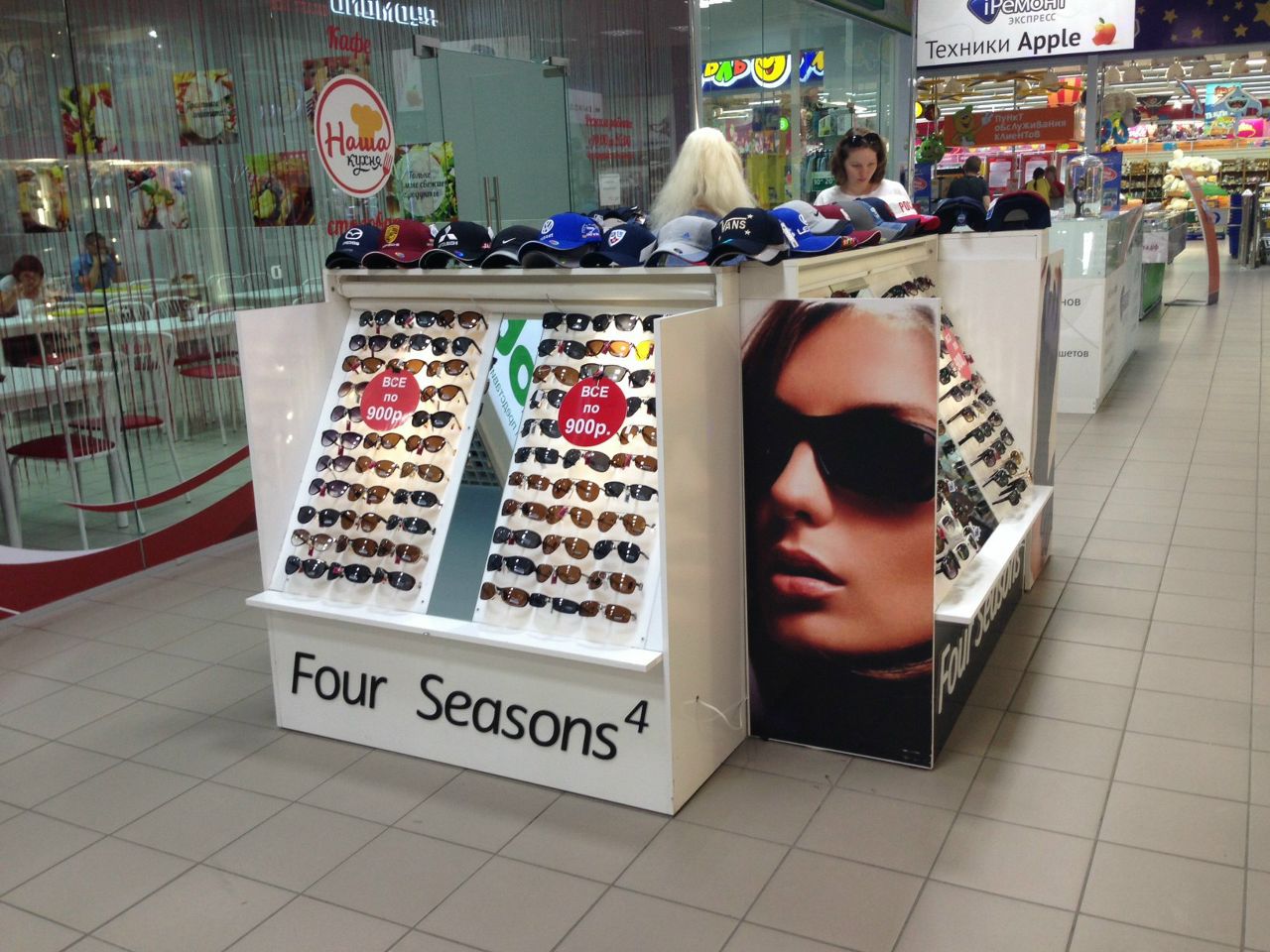 Так летом большая часть ассортимента "Four Seasons" представлена солнцезащитными очками и бейсболками. Осенью ассортимент дополнят зонты и перчатки, зимой - шапки и варежки.