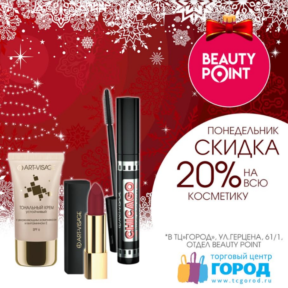 Предновогодние акции на косметику Art-Visage уже ждут Вас в ТЦ "Город".