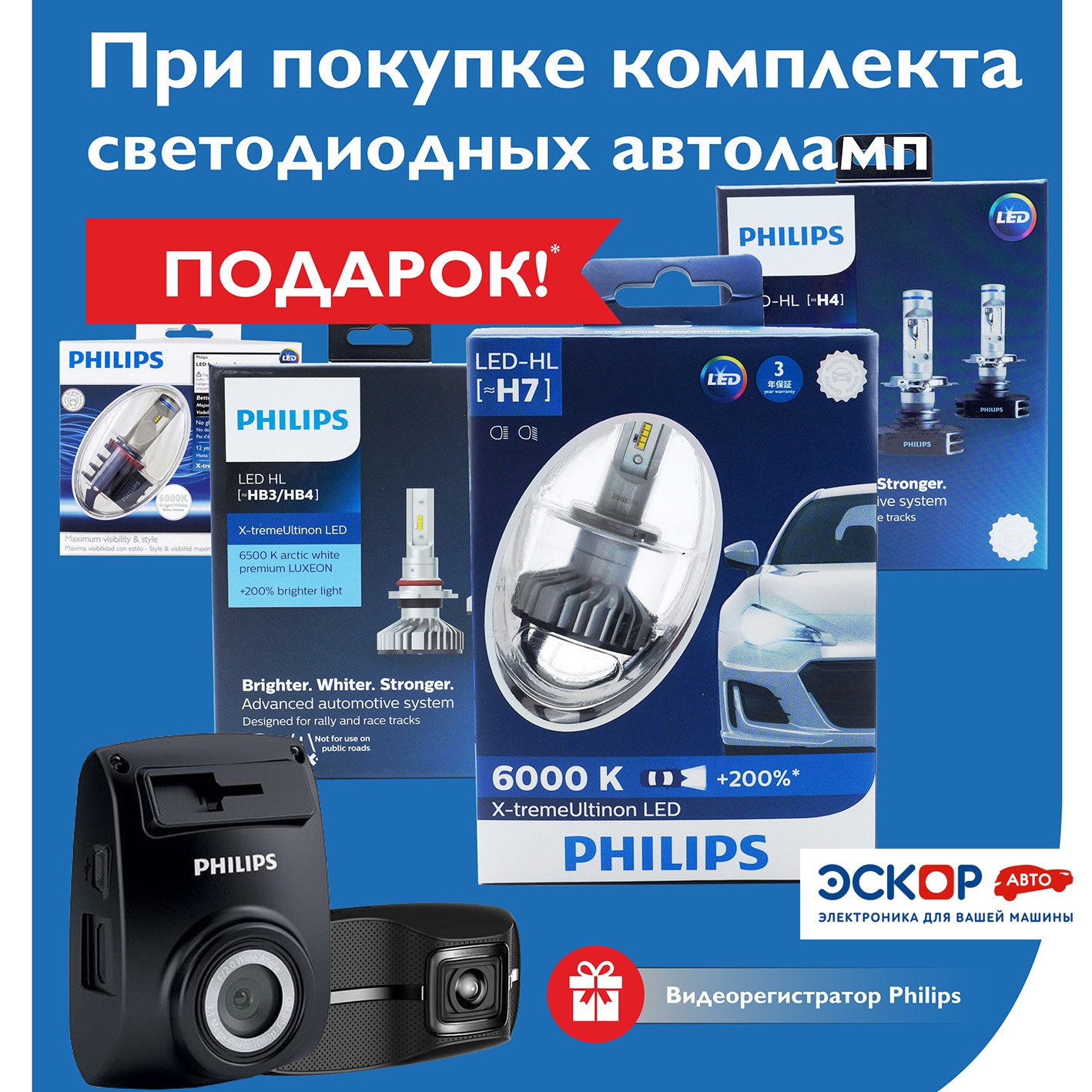 При покупке комплекта светодиодных ламп PHILIPS ВИДЕОРЕГИСТРАТОР в подарок!